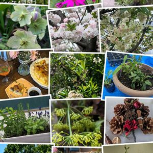 Googleフォトが「自然のブーケ💐2024年」と題してコラージュしてくれました🍀😊✨JHS東海支部ハーブの寄せ植え🌿愛知牧場🌻お友達の🏠お料理教室🧑🍳近所の桜並木🌸トロッケンクランツの講座~♬♬