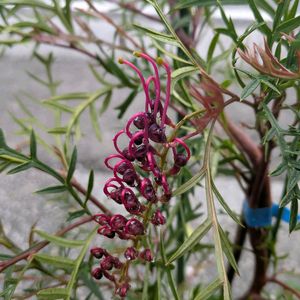 グレビレア 散歩途中の道路側で見掛けました。