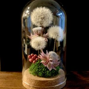 🏷️春の綿毛祭り いくつか作りました😄 1.自宅のセルリアをドライに して入れました💕 2.ベルカップという、カップみたい な木の実を土台に。花かんざしは 自宅でドライにしたものです🌼 3.クルチフルーツというさらに小さ なカップのような実を土台にしま した。