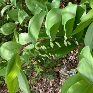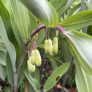 アマドコロ🌱 ヘンリーツダ🌱、ギボウシ🌱 アマドコロの花が咲きました ヘンリーツダやギボウシも若葉が出てきました🌿