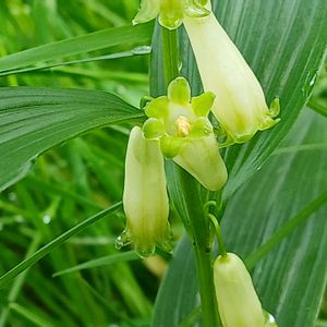 💚甘野老 アマドコロ 咲いてた😊 どんな顔してるのか ぜひ見たい ムリをして上を向いてもらいました かわいい❗💚