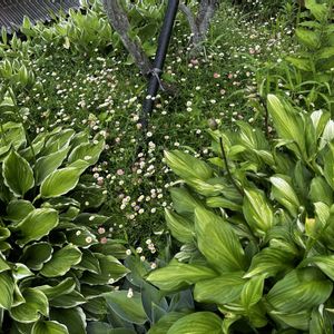 エリゲロン満開♡ 手前のギボウシと向こう側のアマドコロが、エリゲロンのエリア拡大を防いでくれています。