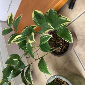 アマドコロ(甘野老) 今日2枚目の投稿のナルコユリと比較するためお蔵入りしていたアマドコロを引っ張り出しました。 1️⃣佐倉くらしの植物苑 2025.426 2️⃣3️⃣4️⃣5️⃣我家の斑入りアマドコロ 茎は角張り、触るとざらざら? 花柄の先に1〜3個の花。 葉は幅広の長楕円形。 開花期は4〜5月, 草丈は50〜80cm