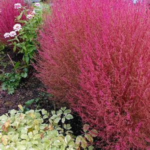 秋の訪れ🍂庭 ①コキアが赤く色付きました❤️去年より大きな🧹が作れそうです😊 ②紫木蓮の実 ③ギボウシ ④アマドコロ ⑤斑入りタニウツギ 朝晩は部屋の暖房をオンにする様になりました😅
