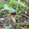 ウラシマソウを結実させたい場合は、肉穂花序(にくすいかじょ)を囲む仏炎苞(ぶつえんほう)を破いて受粉させます。先端が突起になっているのが雄花で、その花粉を雌花の先端に軽くつければ完了です。