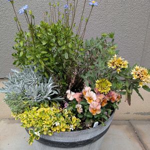 冬越ししたガイラルディアガリアが咲いてきました✨️ 3枚目の写真は同じ寄せ植えの秋の様子 この時大きく育っていた観賞用トウガラシは小さく切り戻されて株元にちょろっと新芽が出ている状態 これから成長して中央の穴を埋めてくれるかな🤔