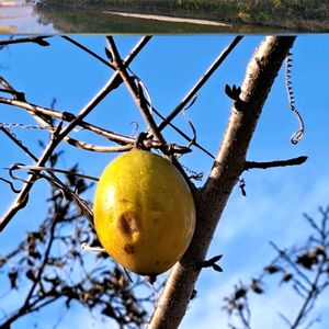 大きな桜の木にキカラスウリの実が沢山絡み付いていました。 筑後広域公園の土手にて 2025年12月16日