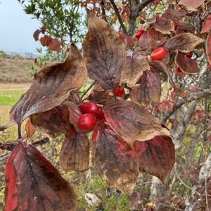 ① サンシュユ 山茱萸下記 ② タンキリマメ 痰切り豆 ③ クスノキ 楠木 ④ ネズミモチ 鼠餅 ⑤ ナンキンハゼ 南京櫨 実を食べに来た鳩 散歩する公園の実です。