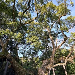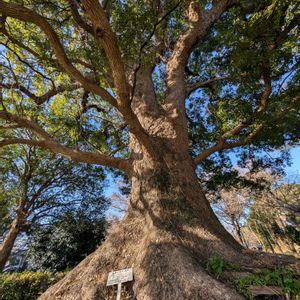 クスノキ クスノキ科ニッケイ属 常緑高木 茨城県以南の暖地に分布 史前に東アジアから日本に帰化した可能性がある。 千年以上になるという樹齢の長さから、神聖な木や縁起の良い木とされ、神社仏閣の御神木や天然記念物に指定されている。 通常の樹高は20m、直径3〜5mほどだが、樹高50m、直径8mを超える巨木もあり、日本の巨木ランキングの上位はほとんどがクスノキが占める。 葉の寿命は1年限りで、春になると関東ではゴールデンウィークの頃に落ち葉になる。 葉は3本の葉脈が目立ち、特徴的な香りがする。裏面は白っぽい。 アオスジアゲハの食草である。 花期5〜6月 直径3〜5mmのクリーム色の小花を咲かせる。 果期10〜11月 7〜9mmの液果で、黒紫色に熟す。 このクスノキは先日訪れた大宮氷川神社にある「夫婦楠」です。 御神木の1つとして注連縄を張られていて、境内の見所の1つとなっています。 🏷️木曜日は木 に参加させていただきます。