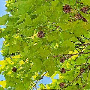 木々の新緑に癒やされて来ました。 ❶❷❸タイワンフウ ❹タイワンフウ モミジ クスノキ ❺モミジバフウ 春日公園(福岡)にて 2026 年4 月16日撮影