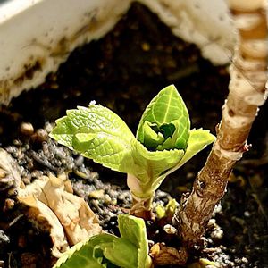アジサイ ベランダに置いてある簡易温室の中で ぬくぬくとしていたアジサイ。 根本から新芽が😄 2023年11月25日播種 🏷️みしょり隊