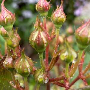 🏷️金曜ローズショー 🏷️金曜日の蕾たち 参加します ① ミニバラ開花一番乗りꔛෆ コルダーナシリーズだったかなぁ🙄💭 ② シランもようやく咲きそうです💜 ③ 地植えの紫陽花 ④ 地植えの山紫陽花 どちらも〜蕾確認(*´艸`) ⑤ サラサドウダンも小さな蕾がたくさん付きました✌