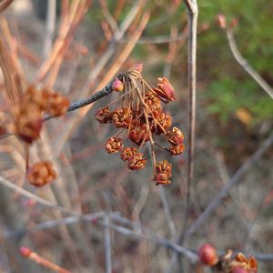 『2025振り返り』 サラサドウダン辺りでしょうか💦🙄 垂れ下がる花柄の先に、果実(蒴果)が上向きについていました ※ サラサドウダン(更紗灯台) ツツジ科 ドウダンツツジ属 4~5月 2~5m 在来種 落葉低木 (2025/12月下旬撮影)