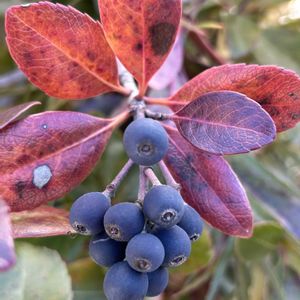 こんばんは😊 今日は、暖かかったですねー🥰 さて、ソヨゴとシャリンバイのコントラストが映えていたので、アップします🥰