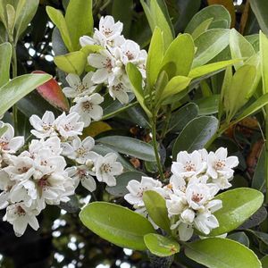 🌸シャリンバイ(車輪梅) 潮風や乾燥、大気汚染に非常に強いため、海岸沿いの公園や道路の脇、ビルの植え込みなど、過酷な環境の緑化によく選ばれるタフな植物です。 ⚫︎バラ科 シャリンバイ属 ⚫︎原産 日本 ⚫︎花期 4月〜6月