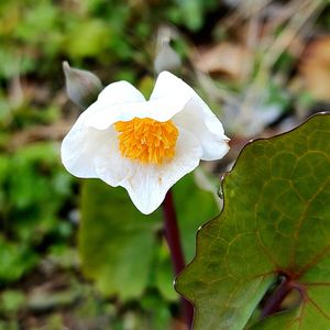 シラユキゲシ 別前:スノーポピー 科名:ケシ科 属名:シラユキゲシ属(エオメコン属) 1本の花茎に直径2~3cmの花を複数つける。葉は一芽に数枚つき、浅く裂ける。 花茎5cmほどの花の中心部に黄色の雄しべをつけている姿はケシを想起させる。 耐寒性の多年草で、腐植質に富む湿った土壌を好み、夏の乾燥を嫌うことから、庭の半日陰に咲く。