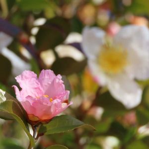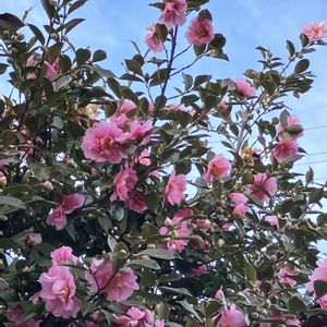 椿が咲き始めましたが まだまだサザンカが主流に咲いています♡ サザンカの方が花びらが薄くて透け感があります‧˚₊*̥