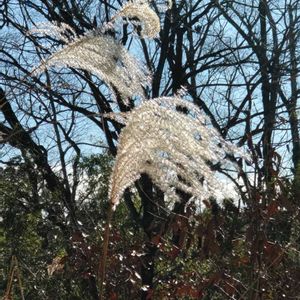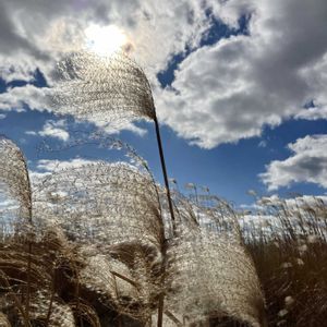 おはようございます😊 いつもありがとうございます♡ いつもの散歩道🚶♀️🚶♀️🚶♀️ ススキの綿毛が日に照らされてキラキラ✨✨ 2026.1.9 📷️