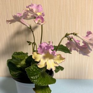 ストレプトカーパス種まきっ子 No.9アモーレパープルの色合いで花弁ギザギザ、去年の私の心を奪った花に似てるね。 なんといっぺんに ②No.10ピンクにパープルの線 ③No.11紫一色 さっきはお椀型だったのに花弁ひっくり返ってしまった。 大輪の花なのに?大きさ分からないね