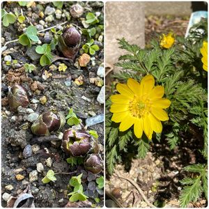 我が家の小さな庭〜🌱 冷たい土からニョキニョキ芽吹きました💚 ⬅️ 今日の花芽🌱 ➡️ 昨春のお花🌼🤍💛🌼🌷 1️⃣ フクジュソウ 2️⃣ バイモユリ🪴 3️⃣ スノーフレーク🪴 4️⃣ ミニ水仙(ティタティタ) 5️⃣ チューリップ 早く☀️あったか春💐になぁ〜れ♪(๑ᴖ◡ᴖ๑)♪