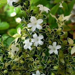 ハクチョウゲ 斑入り🌱 盆栽仕立てのハクチョウゲに今年も可愛らしい花が咲き出しました😊🤍綺麗な斑入りの葉っぱも爽やかです😉🌱✨天気が良いので朝ウォーキング20分してきました🚶♪♪