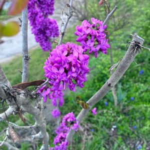 「今日のお花 ハナズオウ(学名:Cercis chinensis) 𑁍𓏸𓈒𓂃❁⃘𓈒𓏸𓂃◌𓈒𓏲𓆸𓂃 𓈒𓏸 」 ( 昨日朝散歩より ) おはようございます 地震大丈夫だったでしょうか 😣 昨日の地震 津波 警報 📱 📢!! いつ聞いてもあせります。 ご無事で🙏 そして今日 昨日は半袖でも いけそうな天気から かなり低い14度 今日の家事は腕まくりの袖を 下ろしました。肌寒い☔️