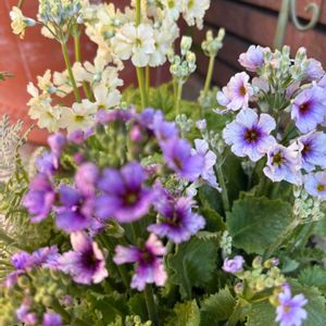①久しぶりにウインティーライムグリーンの寄せ植え作りました。 ②③プリムラマラコイデス ブルーを合わせてみました。 小さな花が集まってるのが好きみたい🥰