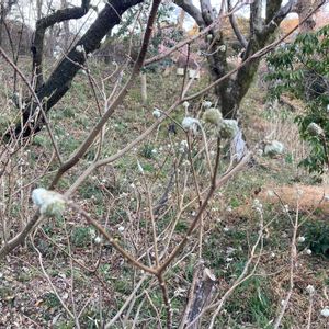 ミツマタ君にも「もう少しお待ちください🙏」 と言われしまいました😅💦 ミツマタ ジンチョウゲ科 ミツマタ属 幹は株立ち状になり、枝が必ず三つ叉状に分かれるのが特徴。 名前の由来ですね🎶 最後のpicは、お決まりの冬芽・葉痕💕🎶 ではなくて、葉痕のみですね😅 半円形で隆起して、維管束痕は1個で弧状になっています。 満開のミツマタも素敵ですが、これくらいの咲き加減もビロード感があって素敵です✨💛🎶 🏷️金曜日の蕾たち