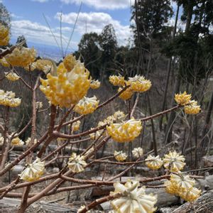 箕面の山をウォーキング🚶 初めて見る花で調べてみたらミツマタでした。 特徴的な黄色くて丸い花は灯りが灯っているみたい。 2枚目は北急箕面萱野駅近くの河津桜