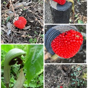 おはようございます♪ 目黒自然教育園の散策 🔴赤い実を見つけました ↖️ヒヨドリジョウゴ ナス科 ⬆️サネカズラ マツブサ科 ↗️アオキ アオキ科 ⬅️キチジョウソウ クサスギカズラ科 ⏺️センリョウ センリョウ科 ➡️マンリョウ サクラソウ科 ↙️ムサシアブミ サトイモ科 ⬇️ヤブコウジ(十両) サクラソウ科 ↘️ハナミョウガ ショウガ科 🔴真っ赤な火曜日🔴