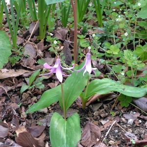 🌿春の山野草🌿 1️⃣カタクリ 2️⃣ショウジョウバカマ 3️⃣キケマン 4️⃣ムサシアブミ 5️⃣イカリソウ 水元公園グリーンセンターの温室の裏にある山野草コーナーで咲いてました🌿
