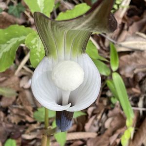 春の庭のヘビさん族🐍 2026.4.17pic 久々に庭に水道水をあげることができました🙆 (ずっと風呂の残り水を汲んであげていました😅大変でした😭💦) ①ユキモチ女王👑(ユキモチソウ) ②素心ムサシアブミ+スミレ🤍 ③ウラシマソウ🎣+スミレ💜 ④素心ムサシアブミ🐴 スミレ何だろなぁ〜🤔 我が家のテンナンショウ族 今年は素心ムサシアブミが元気です🙌 🐍さん嫌いなみなさん ごめんなさいね〜🙏😙