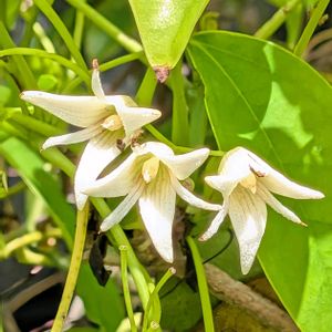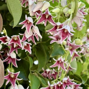 今日のお花 🍀ムベ 郁子 アケビ科 ムベ属 気になっていた💚グリーンのカーテンは? それは ムベでした! お花が咲いていたので!!寄ってみました 昨夕の🌙月と⭐️星がキラキラと!!