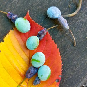 美しすぎる実🩷💜💙🩵💚🤍 1️⃣イヌマキ(犬槙) 赤い部分は花托(カタク)、緑色はトウヒと言って、種を包むもの(有毒) おとぎの国の可愛いこけしちゃん💕 2️⃣3️⃣ノブドウ(野葡萄) 日の当たる側溝に青紫系の実 色が濃くなってきています この色大好きです 4️⃣5️⃣イシミカワ(石見川) 日に当たってピッカピカ ピンクっぽいものと水色 ブドウのような雰囲気 やはりサファイアブルーのこの色💙 花が少なくなって実の季節となり、色とりどりの実を見ているととっても癒されます🎶 自然の宝石💎💎💎