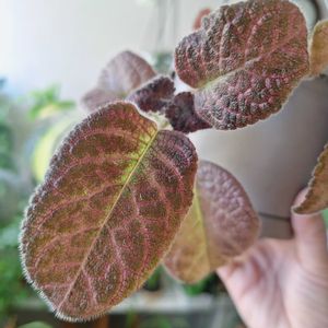 エピスシア クプレアータ 見切りで買ったあの3株、ぼちぼち新葉に入れ替わって葉っぱが増えてきました🙌 夜🌙ライトで照らすとピンクのメタリックでとってもキレイなんです😄