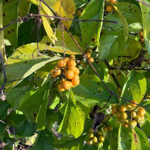 湖岸の実と花と葉っぱ、時々鳥🐧 1️⃣オギノツメ(荻の爪) 名前の由来の爪の様な実 葉腋に咲いた花が段々に爪痕を残しています 2️⃣カクレミノ(隠蓑) グーチョキパーの葉は黄色くなって落ちたりしています 落ちた葉で子供とじゃんけんするのも自然遊びで楽しそう 子供の頃に戻りたい 3️⃣ヤマボウシ(山法師) 落葉樹 4️⃣ジョウリョクヤマボウシ(常緑山法師) 冬でも葉をつけ少し紅葉しています 実が密集してついています 5️⃣カルガモさんのシンクロナイズドスイミング🦆🦆🦆🦆 4羽がなかなかそろわず、結構待ちました👏👏👏 花🌸を探しながら歩いて、湖の景色🏞️や鳥🦆を見るのが、1日のうちで1番ほっこりし、癒される💕時間であります❣️