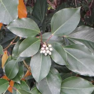 🏷️ 木曜日は気(木)になる実 🏷️ 木曜日は木 参加させて頂きます 今日夕方散歩で出会った木 ①カクレミノ ②カクレミノのお花 ③ネズミモチ ④⑤シャリンバイ
