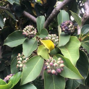 🏷️ 木曜日は気(木)になる実 🏷️ 木曜日は木 参加させて頂きます 今日夕方散歩で出会った木 ①カクレミノ ②カクレミノのお花 ③ネズミモチ ④⑤シャリンバイ