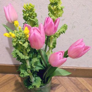 春の感じ🌷.*と💛🌿 チューリップと菜の花 フリージアも まだまだ寒いけど頑張って行きましょう❀( ⸝⸝•ᴗ•⸝⸝ )❀