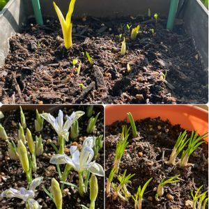 おはようございます 今の外気温3℃ 冬が戻った感じです こんな日が続いています 福岡の桜の開花予想は3/20頃とのことでしたが、こんなに寒かったら咲かないだろうな、と思います ①黄色のスイセン 満開が続いています🥰 今年は、たくさん咲いてくれるなぁ🥰🥰🥰 ②③白いスイセン 開ききってる😱😱 頑張り過ぎよー、と声をかけたくなります 後方の蕾も膨らんできました 黄色が終わる頃、白いスイセンが満開になりそうです💓💓💓 ④ユリの新芽 先日(3/6)よりも大きくなりました。 1週間ほどですが、気温が低いのに、成長してるなぁ、と思います ⑤フリージアの新芽 秋に球根を植えました。うまく育ってくれ、と思いますが、頼りない新芽です 咲かないかも…🥲🥲