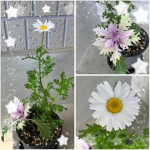 今日も暖かい一日で花達も良かったです❣️ 溢れ種の葉牡丹とノースポールが咲いてくれました💕 ②フリージア可愛い花が咲きました。 ③ルビーネックレスの花が咲いてました☺️ ④去年のシクラメンやっと目覚めて咲いてきました💖
