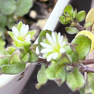 庭のハコベ🤍とオオイヌノフグリ🩵 雑草でも可愛い 3.4枚目はクリーピングタイムの新芽🌱 もう既に18度超え