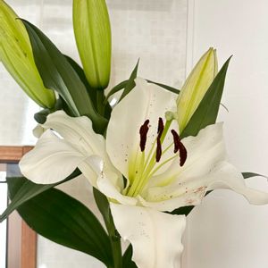 友人から頂いたカサブランカ 大きくダイナミックなお花 香りも良い感じ 白のかすみ草と一緒に飾って見ました🍃🍃🍃🍃🍃🍃🍃