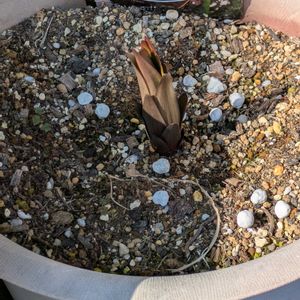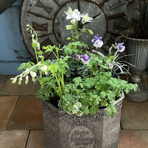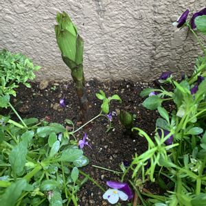 “半日陰向き”の草花たちを ギュっと集めた寄せ植えです オダマキやタイツリソウ ヒューケラなど いろいろ植えましたが じつは隠れた主役が カサブランカ!✨ まだ芽が出たばかりで 「たけのこの里」みたいな ユニークな見た目ですが ぐんぐん伸びて 香り高い純白の花を咲かせてくれる日が待ち遠しいのです♡