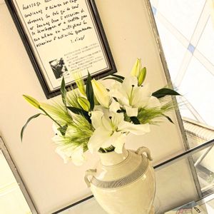 3月の生け込み 器に合わせた色味で カサブランカで空間に芳香を⭐︎