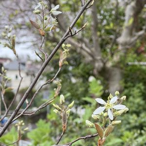 今日のお庭 ジューンベリーが咲きだしました。 鉢植えなのでたくさん実りませんが 白いお花と赤い実が毎年楽しみ💕 うちにもあるのよ〜ハナニラ❣️ 日当たり悪いから少ししか咲きません💦 自分でヤマアジサイにもたれかかってる😅 スノーフレークもヒョロヒョロ〜 こちらはユリに支えてもらってる🤭 最後は植えっぱなしのカサブランカの芽🌱 年々細くなってますがよく咲いてくれます。 球根植えて8回目になります😊