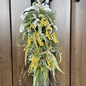 2026.2.15 ミモザのガーランド 昨日pondさんのワークショップに行って作ってきました。 とても素敵な楽しい時間💕 余った材料をお持ち帰りして、ユーカリを少し追加してみた😊