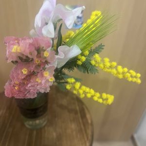 リビングのお花を紹介します 昨日仲良しのおばちゃんがくれた エニシダ✨素敵っ✨ 亡き母に。お誕生日だったので トルコキキョウ、アルストロメリア スターチス…… 仲良しのおじちゃんがくれた シラー・ペルビアナ スパニッシュ・ブルーベル ムスカリ 玄関前のラナンキュラスを 少し家の中にも 日本酒とかなめ茸の瓶を 気にせず使う……😅