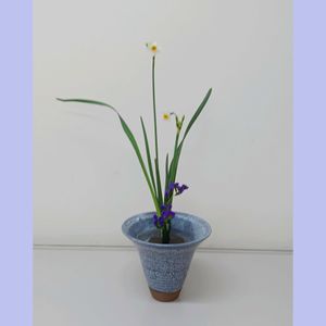 お稽古のお花 新風体生花 二種生 花材 スイセン スターチス 年に一度 あるかないかの水仙 頑張って生けました (^_^;) 🏷ビューティフルサンデー 🏷ニコニコ日曜日 🏷14日は石の日 参加させて下さい 素敵な日曜日になりますように♡