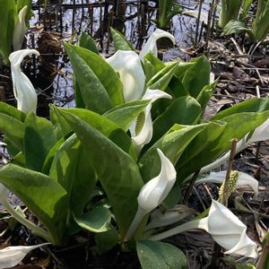 「ミズバショウ」 周辺の山間で、ミズバショウを育てている方に見せて頂きました。 🏷白い水曜日♡ 🏷白い貴婦人✨ 🏷素敵な水曜日 🏷白い花 🏷水辺の水曜日